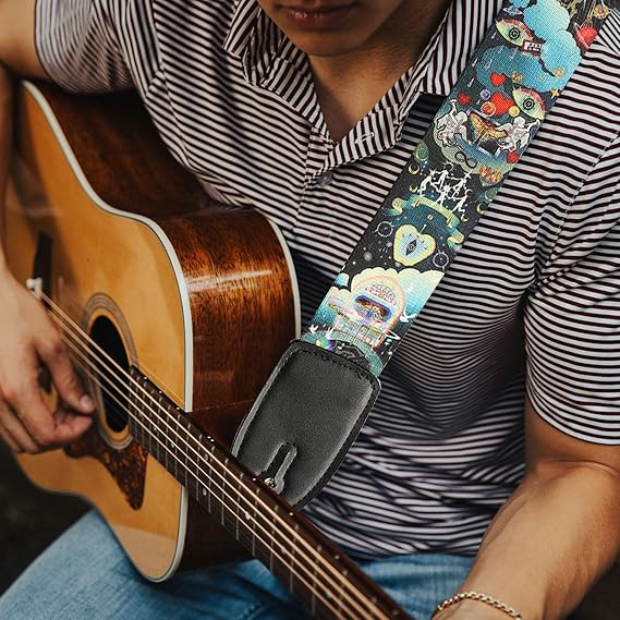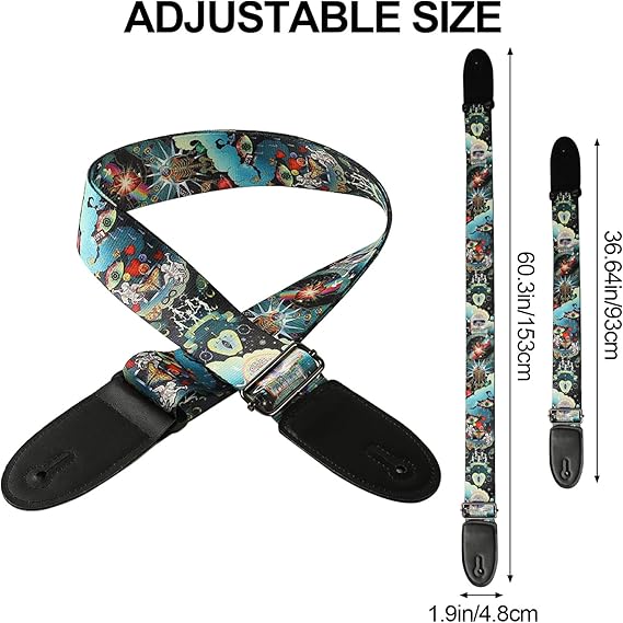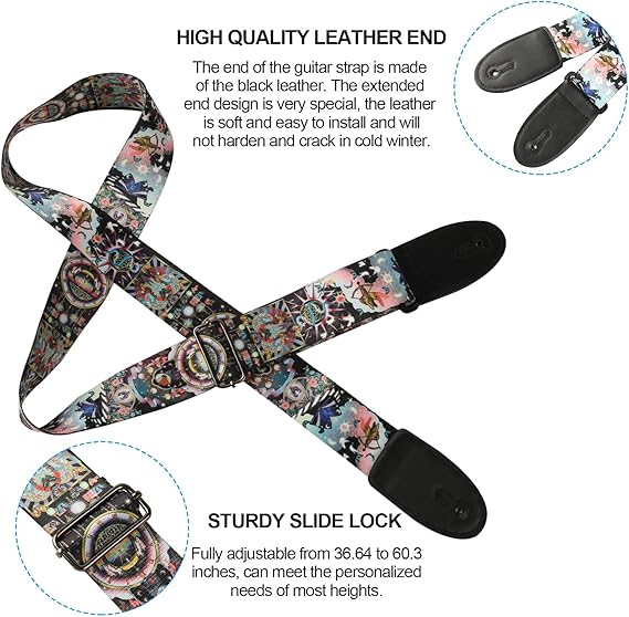 ADJUSTABLE & PRACTICAL: Strong slide buckle lock design, fully adjustable from 36.64 to 60.3 inches, can meet the personalized needs of most heights. Adjustable guitar straps are suitable for birthdays, Christmas, New Year, Valentine’s Day, and other festivals to give to musicians and friends!