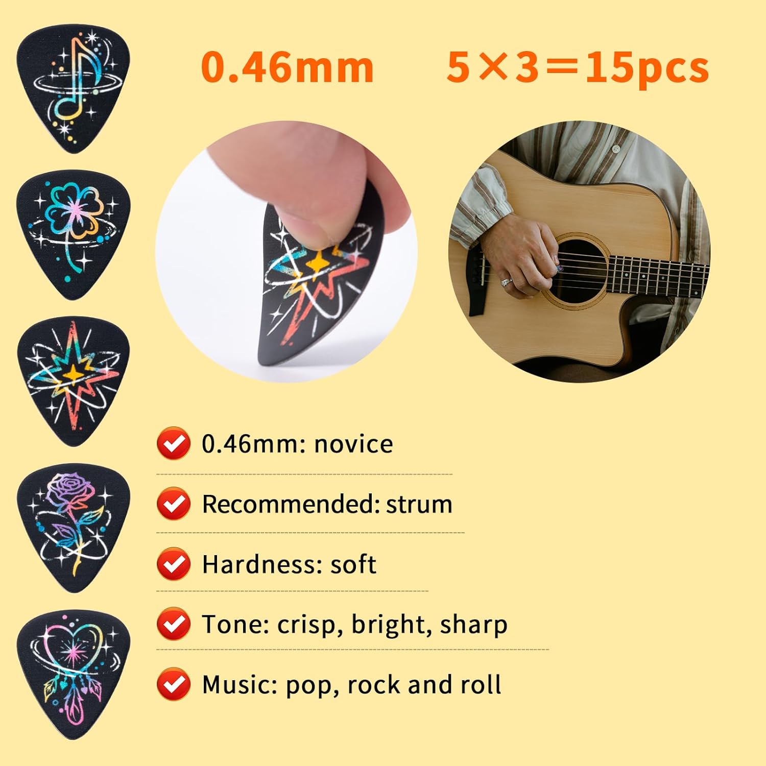 There are many kinds of interesting patterns for our consumers within one set of guitar pics. It is an ideal gift to friends, family, coworkers, and even yourself for birthdays, anniversaries, weddings, Valentine’s Day, Christmas Day, Thanksgiving Day, etc.