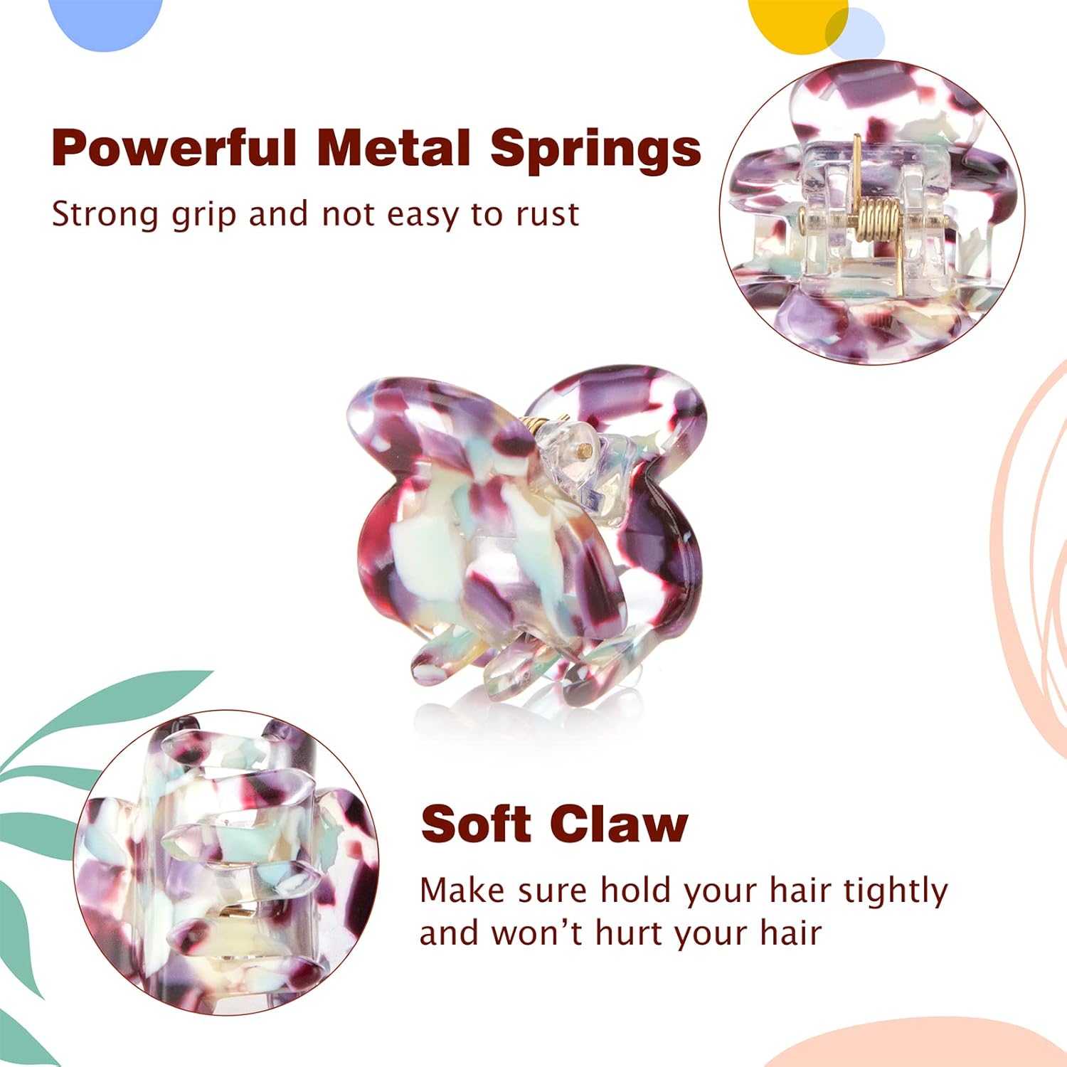 The cellulose acetate is extracted from the pulp of plants. It is durable and scalp-friendly, giving our hair clips a more refined texture and bringing a safe experience to you.