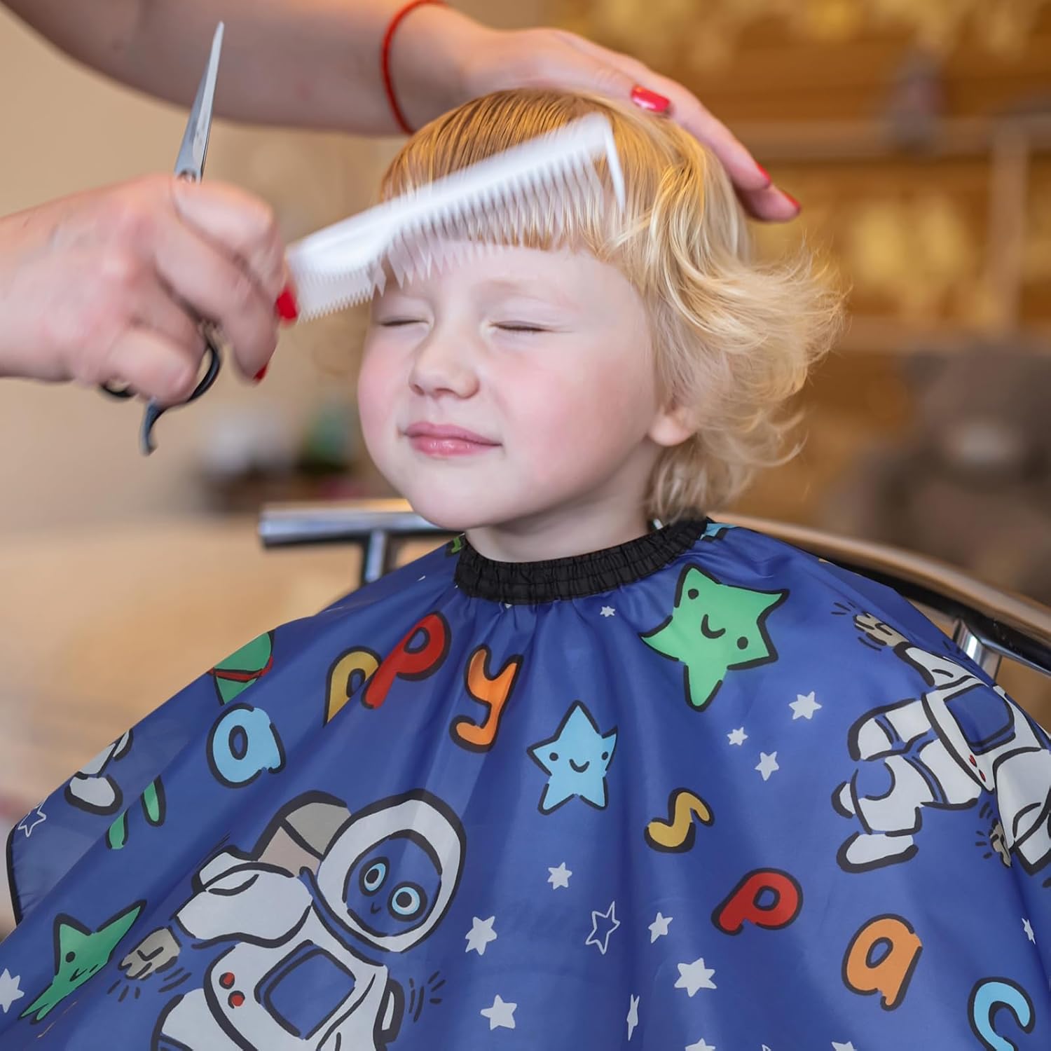 Cute Pattern: The kids barber cape is designed with cute cartoon patterns, such as spacemen, aliens, monsters, or sailing ships, which is good for relieving children’s rejection and making them enjoy the process of haircutting.