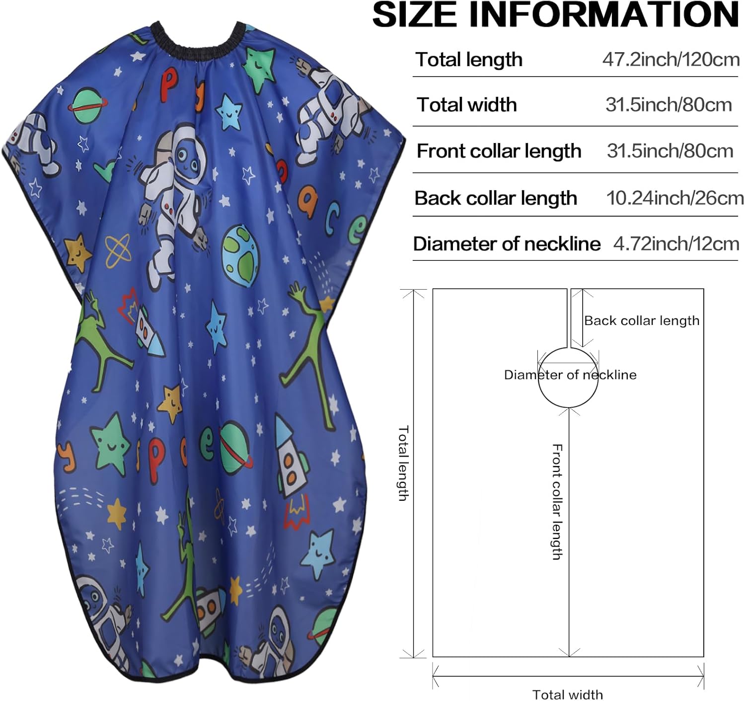 Premium Material: Barber cape for kids adopts quality polyester taffeta, a durable, water-repellent, anti-static fabric, making you clean broken hair, water drops, or any other sudden dirt without effort.