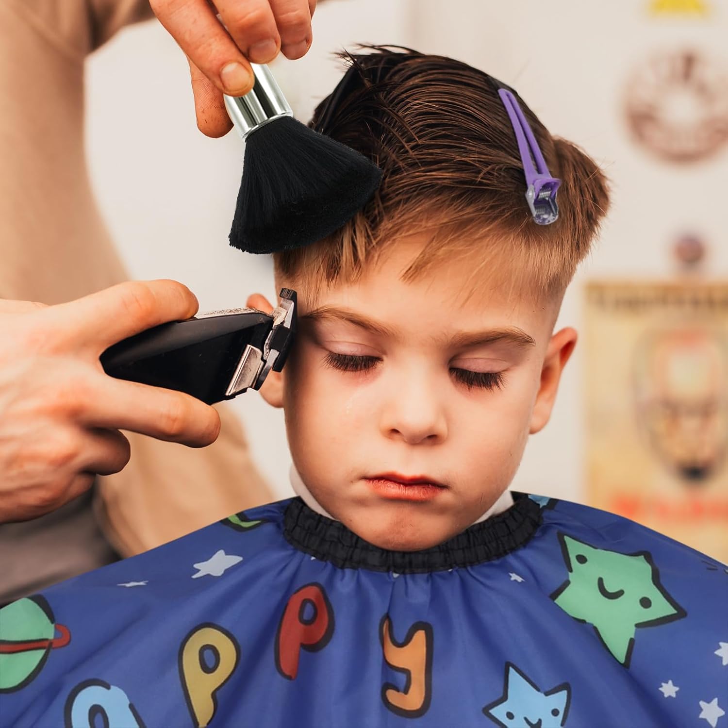 • The bouncy neck duster brush with dense bristles is effective at sweeping away broken hair.